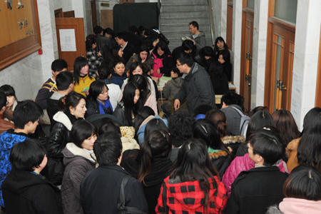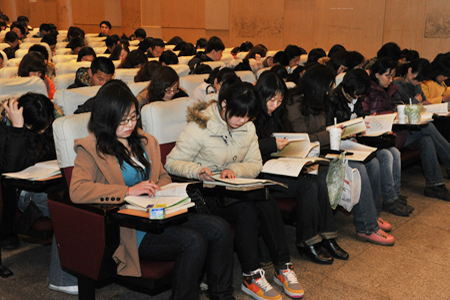 3月20日傍晚,春寒料峭,阴雨绵绵的天气,丝毫阻挡不了自力学员前来参加四月自考考前总复习的热切之情,17:00开始时间还没到,社科院偌大的大礼堂两层座位都被采购供应链管理、金融管理、商务管理三个专业的学员坐满。