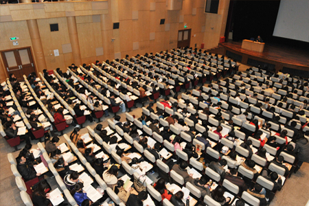 离开大礼堂的时候,第二场复习课已经开始,千人大礼堂没丝毫喧哗和嘈杂,台上老师为教学的激情投入和台下学员的认真专注,让我们这些教务人员油然而生更多的责任和信心。 |